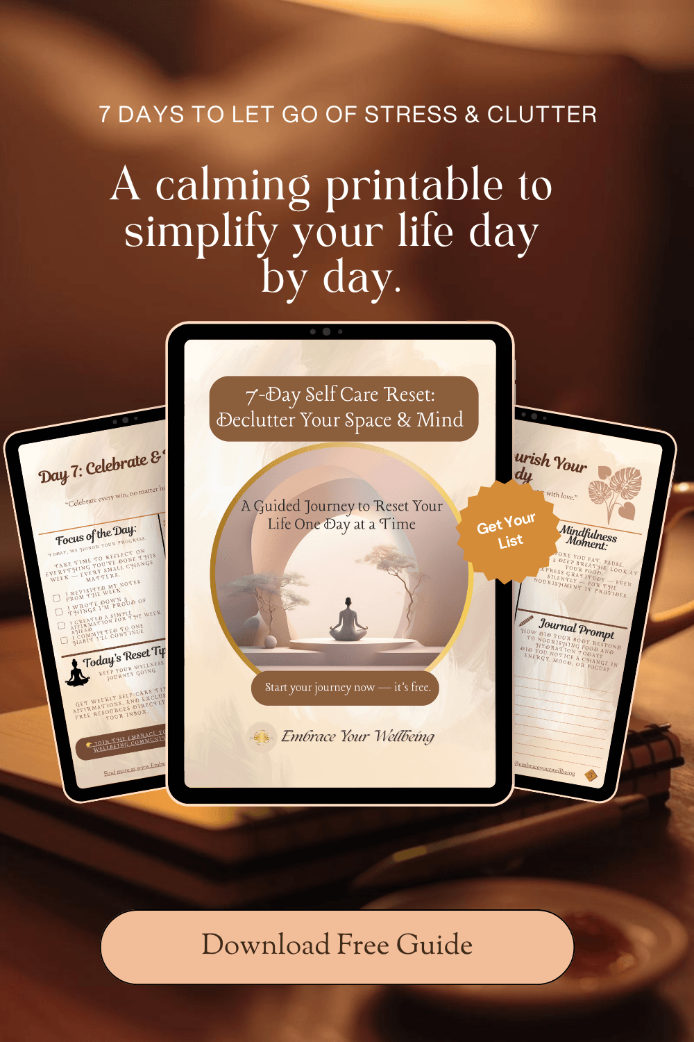 Simple daily prompts to help you breathe, declutter, and feel calm again β even if you only have 5 minutes.